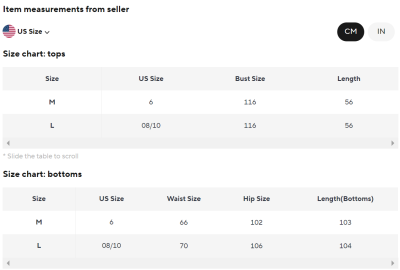 SIZE CHART: